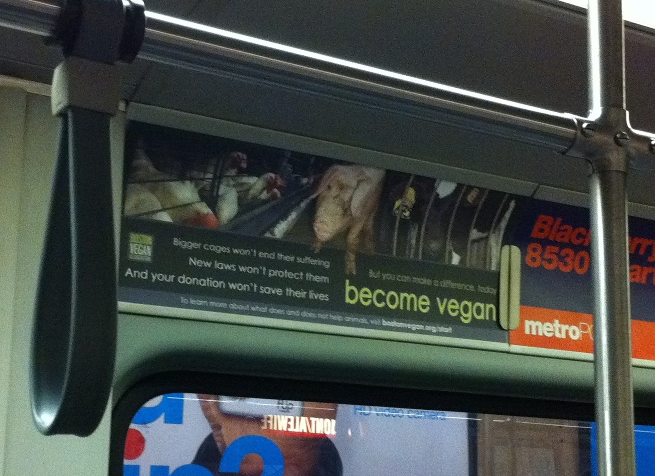In addition to our animal rights reading groups, which are open to the public, we distribute our own literature in busy pedestrian zones and at a popular area events, where we consistently engage members of the public in abolitionist conversations. Our volunteers have disseminated an abolitionist message via MBTA ads (see left), brought Prof. Gary L. Francione to the Old South Meeting House for a discussion on abolitionist animal rights, and offered our literature free to abolitionist groups around the world (a campaign that has now been taken up by the IVA).