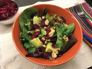 - Top salad with nuts, cranberries, and optional avocado.