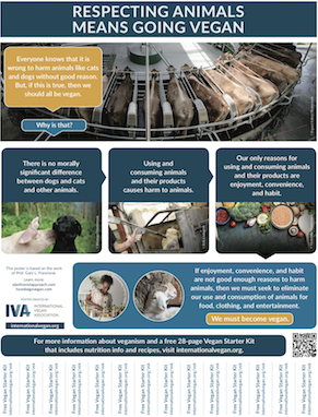 For those places where Vegan Starter Kits can’t be left behind, you can still post an abolitionist message about veganism that directs people to where they can request free copies of the Vegan Starter Kit. Simply download any of the PDFs using the links below, print, cut slits between the tabs, and gently affix where appropriate. Please post responsibly. Thank you.